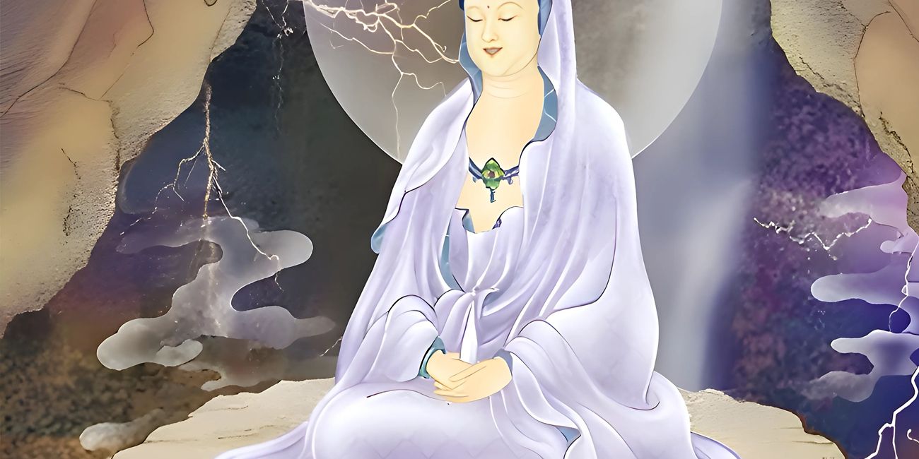 Принявшая много страданий Гуаньинь дала обет спасать все живые существа в мире. Преисполнена сострадания, она наделена свыше способностью внимать призывам всех страждущих. Научившись погружаться в «пустоту», Гуаньинь способна оставлять там все скорби мира.